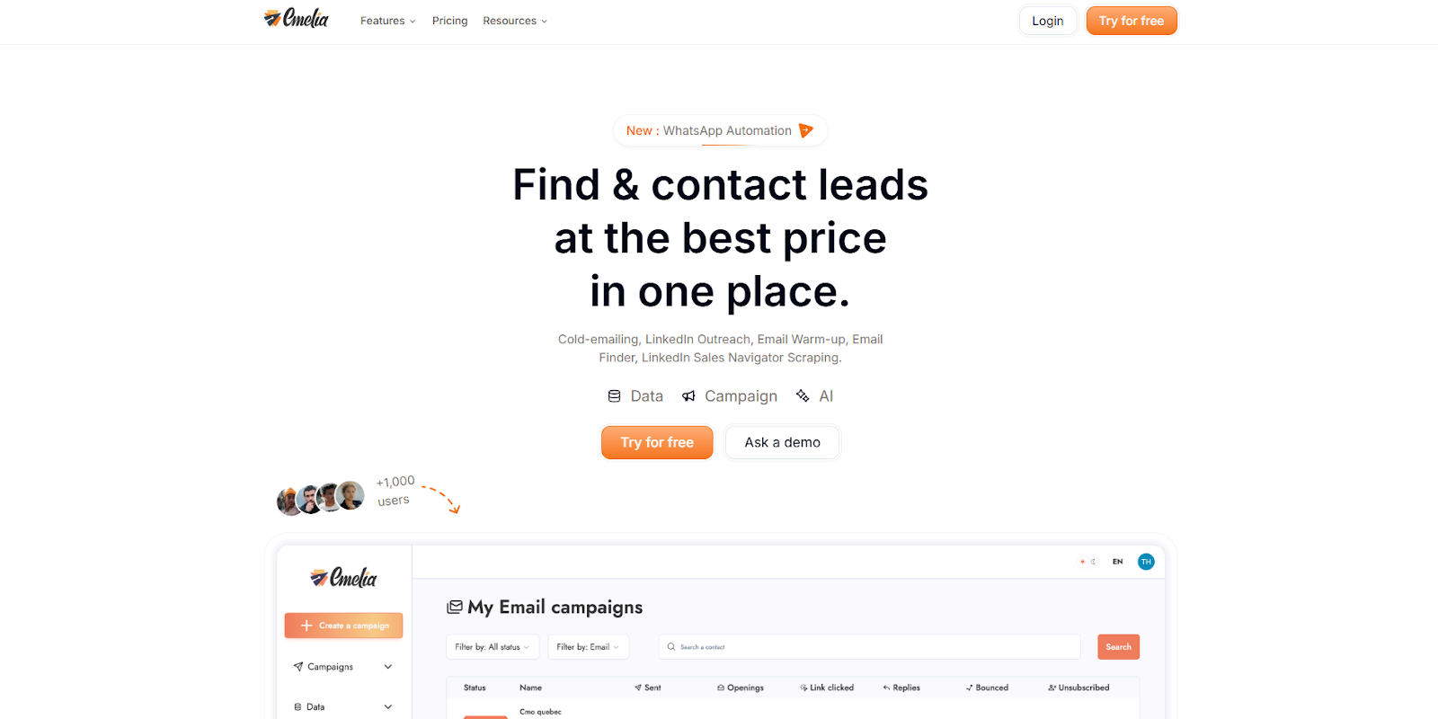 Limitations: Emelia’s user interface can be difficult to navigate across multiple accounts, which can slow down campaign management for agencies or teams scaling beyond a single sender. It also doesn’t offer standalone verification, so its low credit cost is tied to using the broader platform.