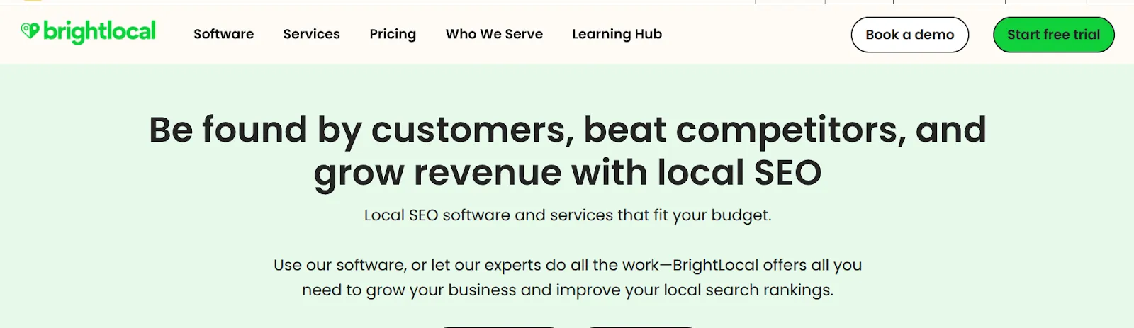If you own a small business or manage a brick-and-mortar enterprise, BrightLocal may work well as your partner to boost SEO and visibility. They focus on local SEO strategies, helping your business become more discoverable by potential customers in your area that are looking for your services.