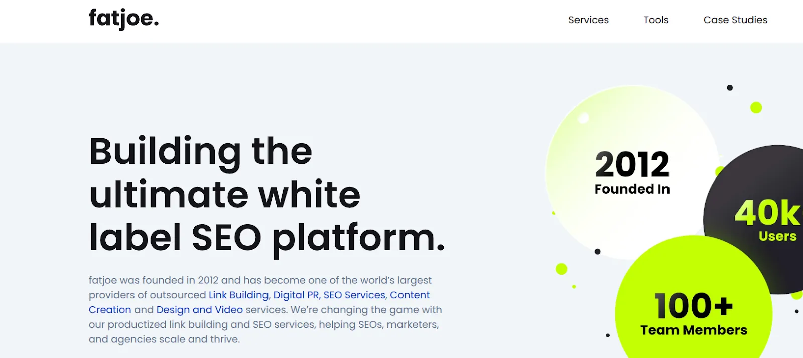 It’s hard to create a list of top outsourced SEO providers without talking about fatjoe. This stands out as the best white label SEO service for agencies, delivering fast turnarounds, affordability, and scalability.